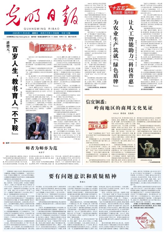 光明日報(頭版):【“十五五”我所思·我所盼】為農業生產筑就“綠色盾牌” 講述人:中國工程院院士、貴州大學校長 宋寶安